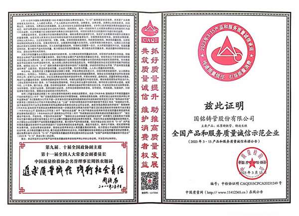 在半個多世紀的崢嶸歲月中,國銘鑄管依托雄厚實力和專業(yè)技術(shù)品質(zhì),堅持“技術(shù)提升質(zhì)量,品質(zhì)鑄就品牌,創(chuàng)新推動發(fā)展”的企業(yè)宗旨,為客戶提供滿意的產(chǎn)品和服務(wù)
